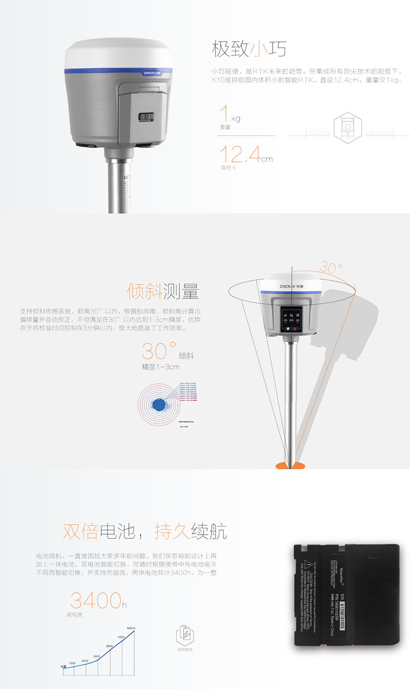 华测X10 GNSS接收机,是RTK领域内的一次大胆的进化。它精致小巧但大有可为,快速精准的半岛(中国)一站式服务平台,坚固抗摔的材质,持久耐用的续航,和智能强悍的配置,为用户带来全新的半岛(中国)一站式服务平台体验。